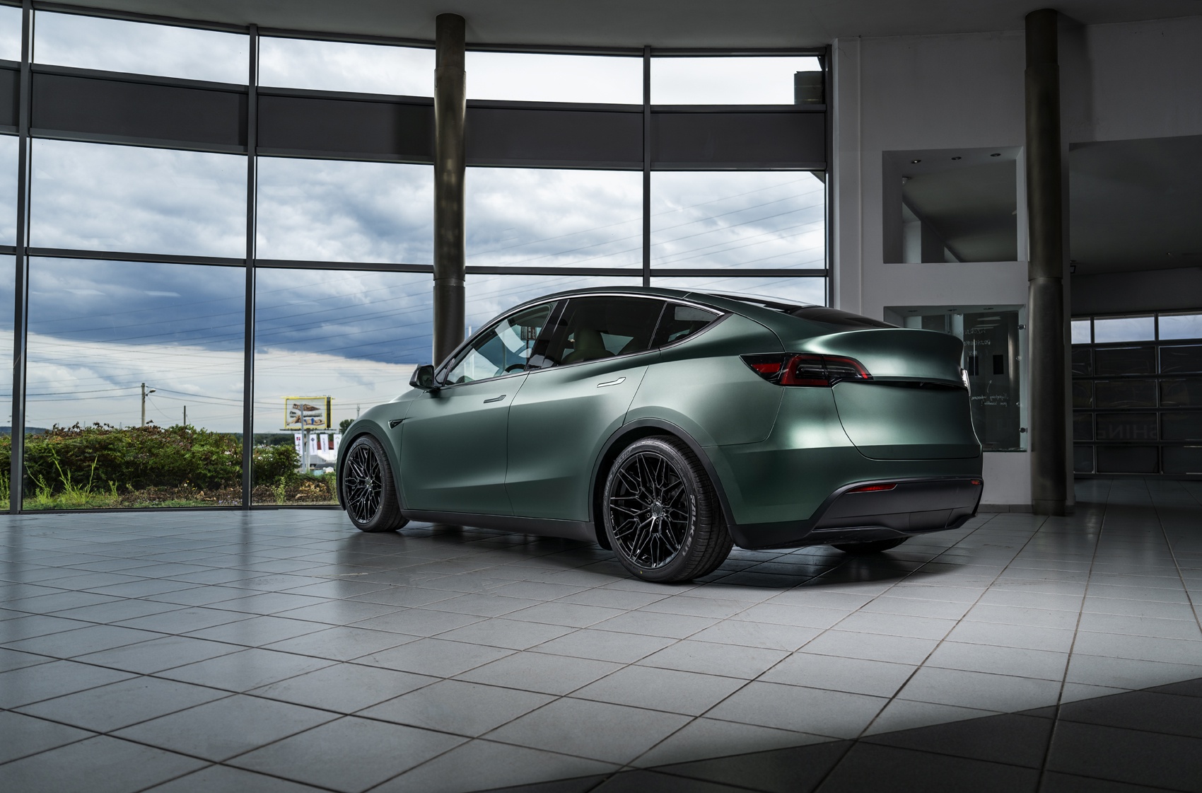 Tesla Model Y gains a bold, performance-focused edge with Concaver CVR6 in Double Tinted Black, fitted in a staggered 20x9.5 and 20x10.5 configuration.